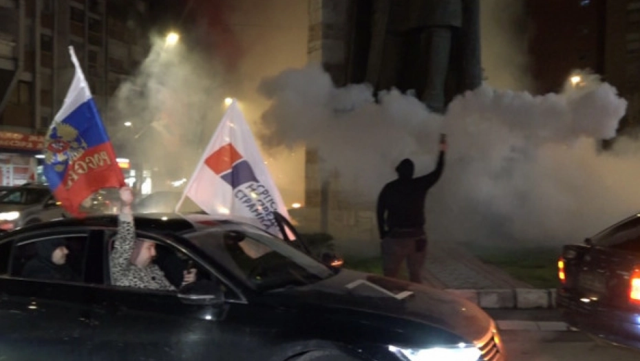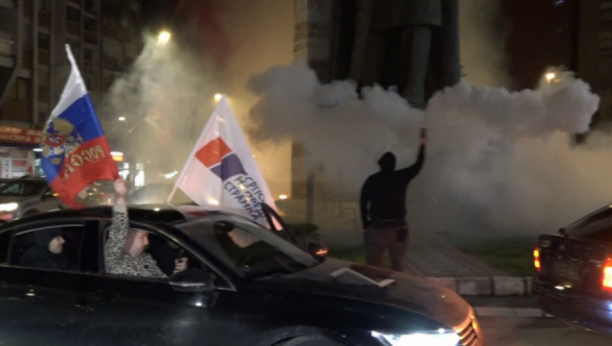 Oni su se provezli automobilima gradskim ulicama uz zvuk sirena, upaljene baklje i istaknute srpske zastave.