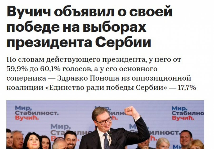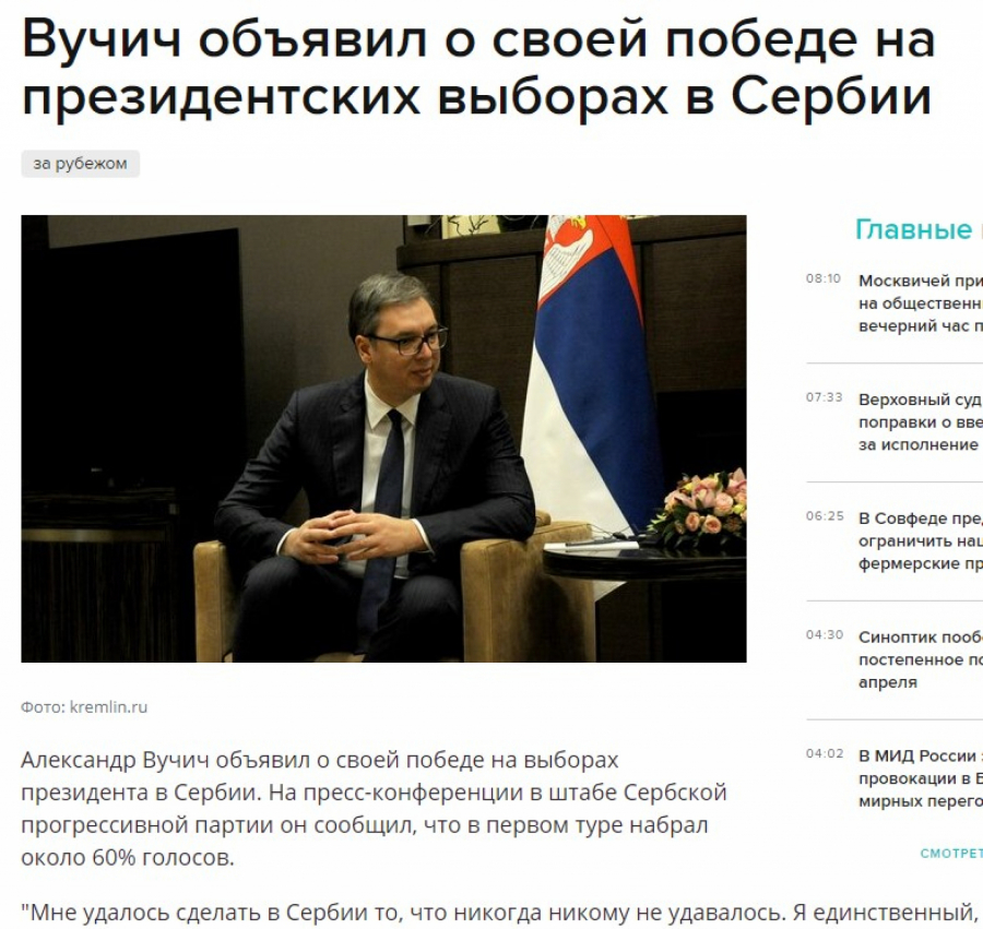 VEST KOJA JE OBIŠLA SVET Vučićevu izbornu pobedu preneli svi ruski mediji