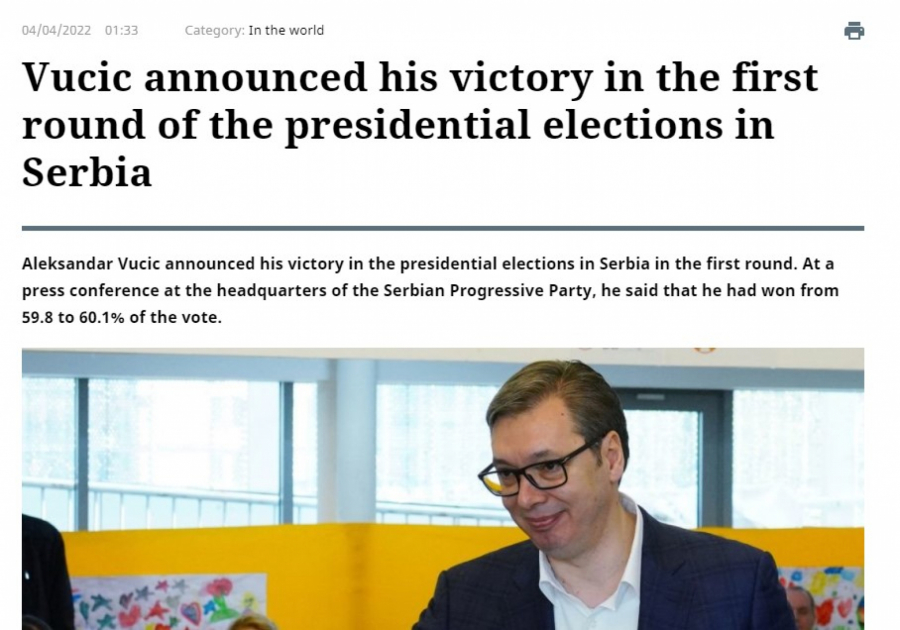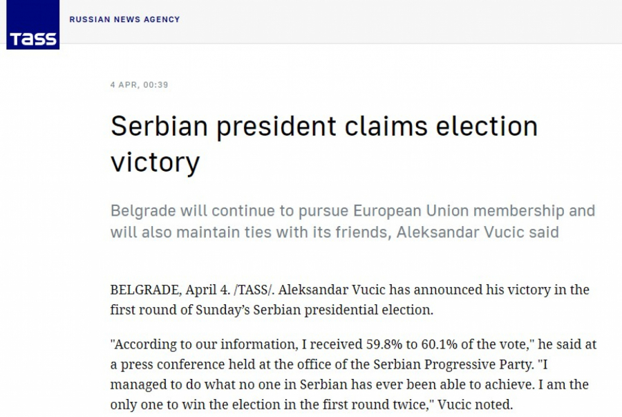 O pobedi Aleksandra Vučića pisali su "Russia Today", "Ruska Gazeta", "TASS" agencija, "RIA Novosti", "m24.ru" ali i svi ostali portali i novine.