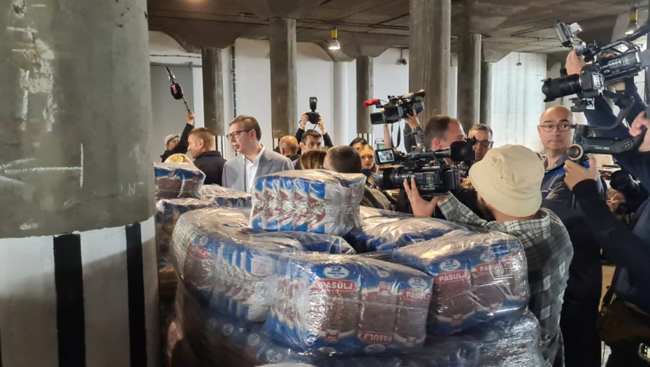 Vučić je tokom obilaska razgovarao sa magacionerima i upravom skladišta, koji su ga upoznali sa stanjem namirnica, ali i raznim sistemima koji omogućavaju da roba ne bude ugrožena, poput agregata i crpnih stanica.