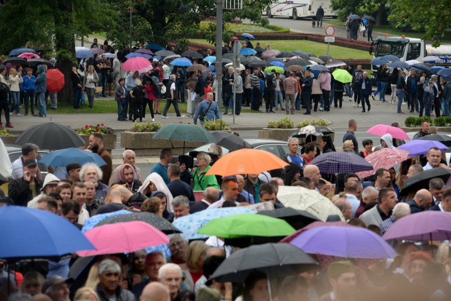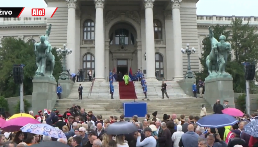 Ispred Skupštine okupio se se veliki broj građana koji su dočekali predsednika Vučića. Veliki broj ljudi čekao je predsednika u Pionirskom parku, ali i ispred Skupštine, dok ga je na ulazu čekala Garda Vojske Srbije.
