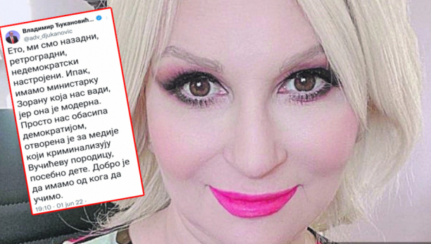 U tvitu koji sadrži brojne "otrovne strelice" na račun ministarke, Đukanović skreće pažnju na činjenicu da je Mihajlovićeva, kako je naveo, "otvroena za medije koji kriminalizuju Vučićevu porodicu".