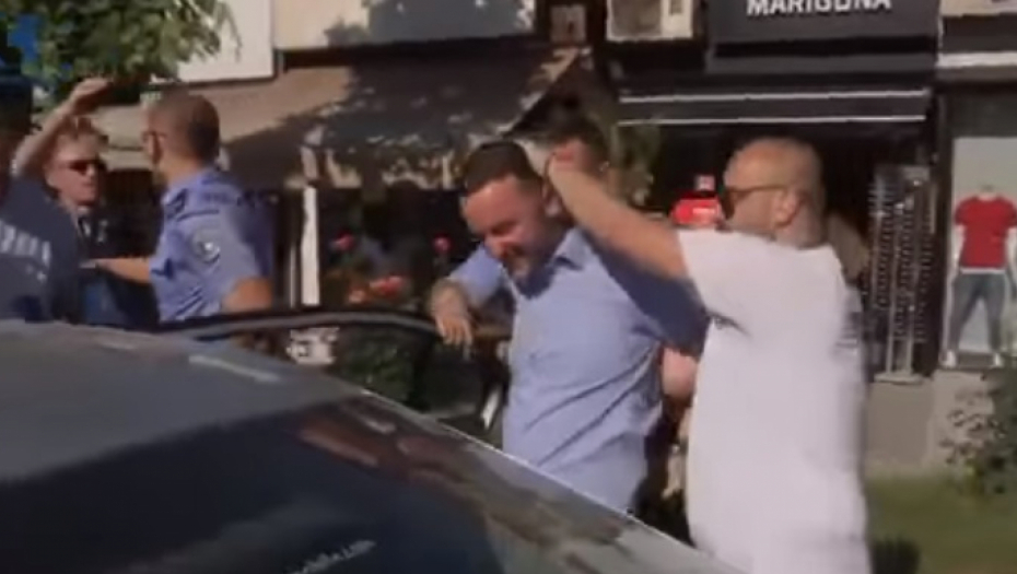 Na više snimaka vidi se kako učesnici protesta pokušavaju da probiju policijski kordon guranjem.