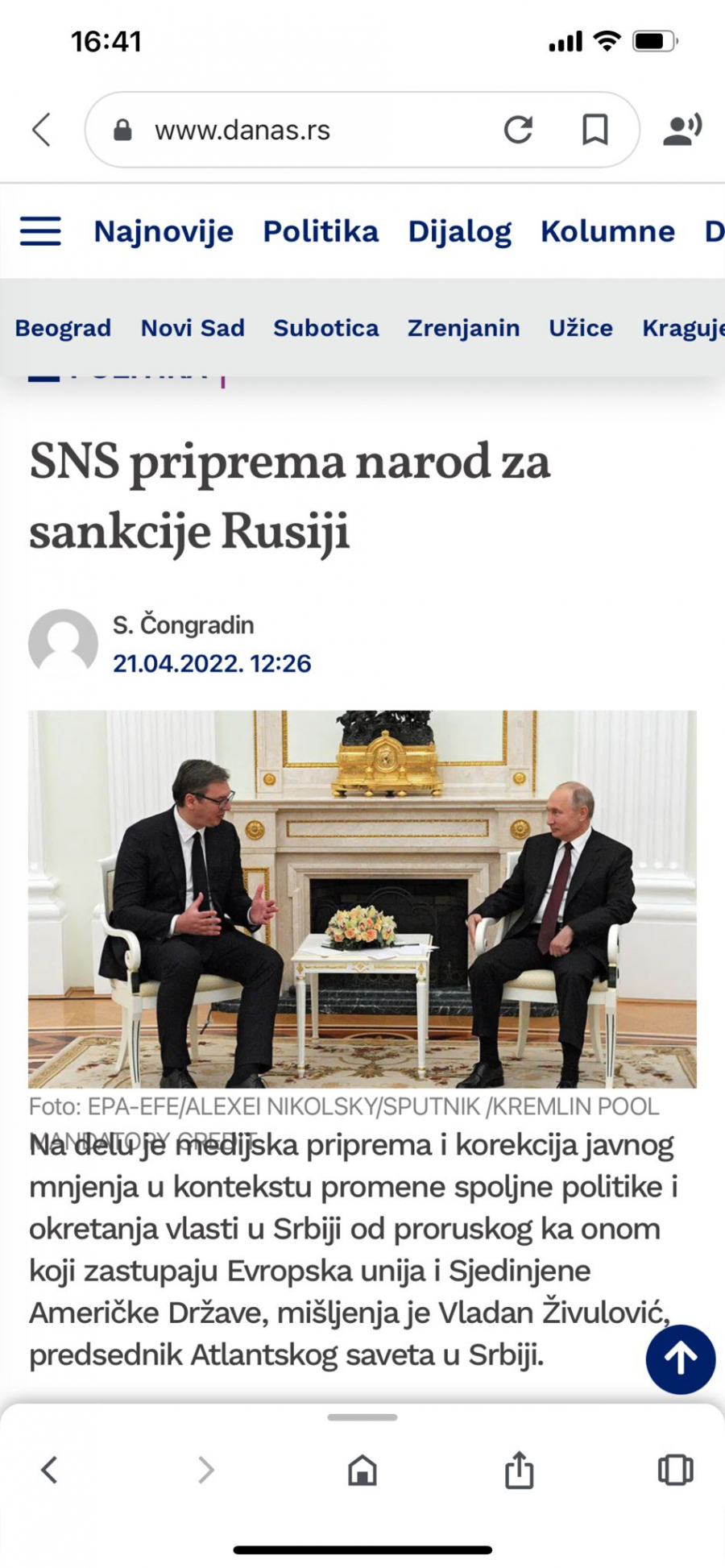 Zapadni analitičari su za kratko vreme promenili mišljenje i stav. U jednom trenutku njihova procena je bila da SNS priprema narod za sankcije Rusiji, da bi sad govorili nešto sasvim drugo, a to je da Vučić ne priprema teren.