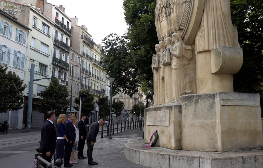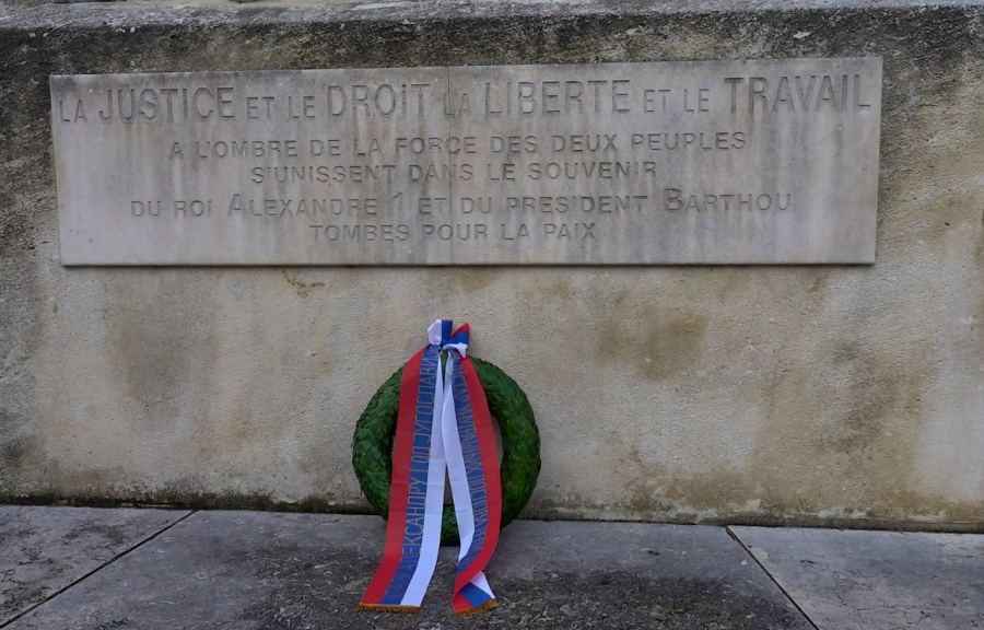 Ministar unutrašnjih poslova Republike Srbije Aleksandar Vulin, koji će se danas sastati sa najvišim rukovodiocima kompanije „Erbas“ u Marseju, položio je lovorov venac na spomen-ploču na mestu gde je ubijen Aleksandar Prvi Karađorđević, a potom položio i cveće na memorijalni spomenik kralju Jugoslavije Aleksandru Prvom i francuskom ministru inostranih poslova Žan Luju Bartuu.