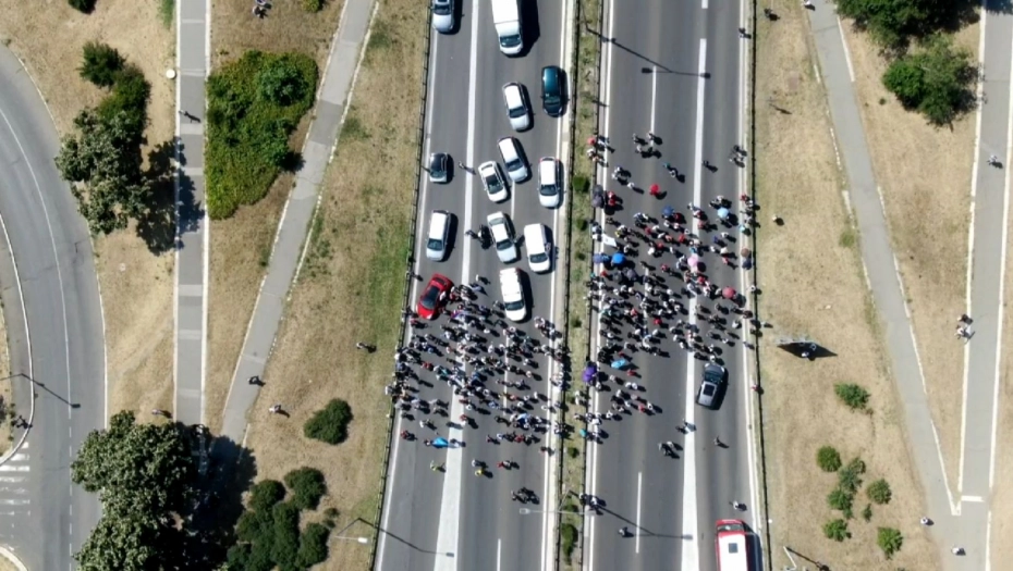 Na slikama sa terena jasno se vidi da svega nekoliko desetina radnika kragujevačkog Fijata blokira Gazelu i time uzurpira pravo građanima da koriste tu saobraćajnicu.