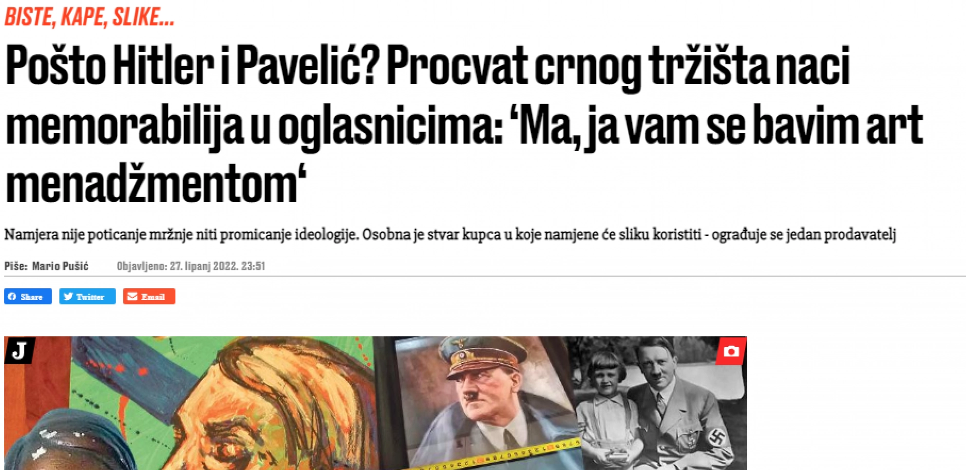 Propast ekonomije i debakl političkog sistema, komšije gura u njihovo poslednje utočište - ustaštvo. Sa ratom u Ukrajini krenula je neverovatna pomama za zlikovačkim obeležjima, a Pavelić i Hitler su najtraženiji.