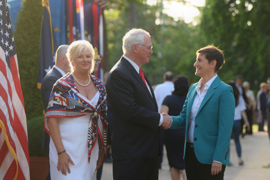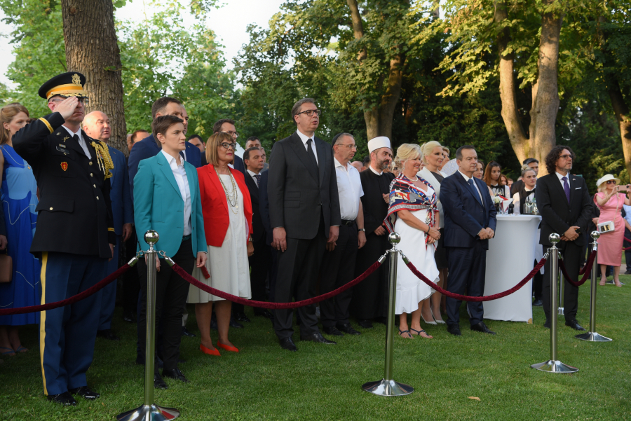 Proslavi Dana nezavisnosti SAD prisustvuju predsednik Srbije Aleksandar Vučić, premijerka Ana Brnabić, predsednik skupštine Ivica Dačić, patrijarh Porfirije.