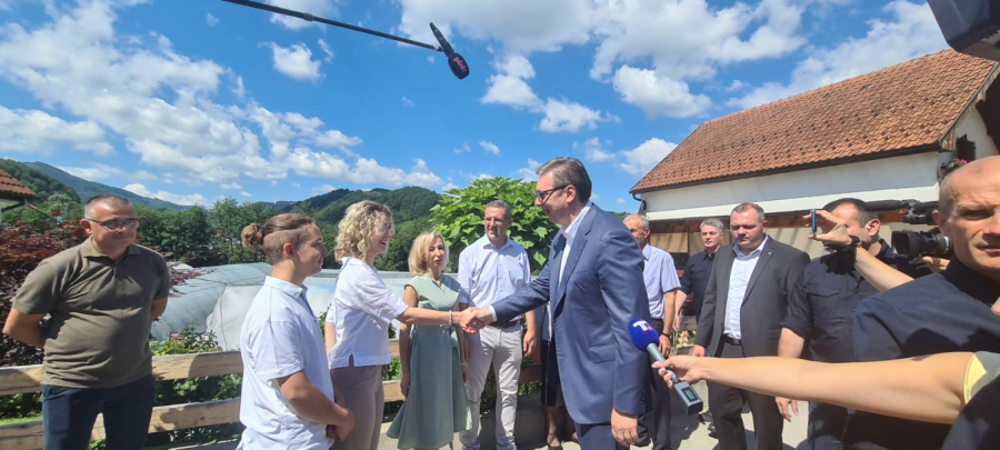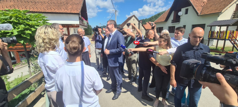 – Čudesno je, ja sam prvi put ovde, nisam video neko ovakvo mesto… Koliko je škola daleko? – pitao je Vučić, na šta je dobio odgovor da je škola udaljena 11 kilometara.