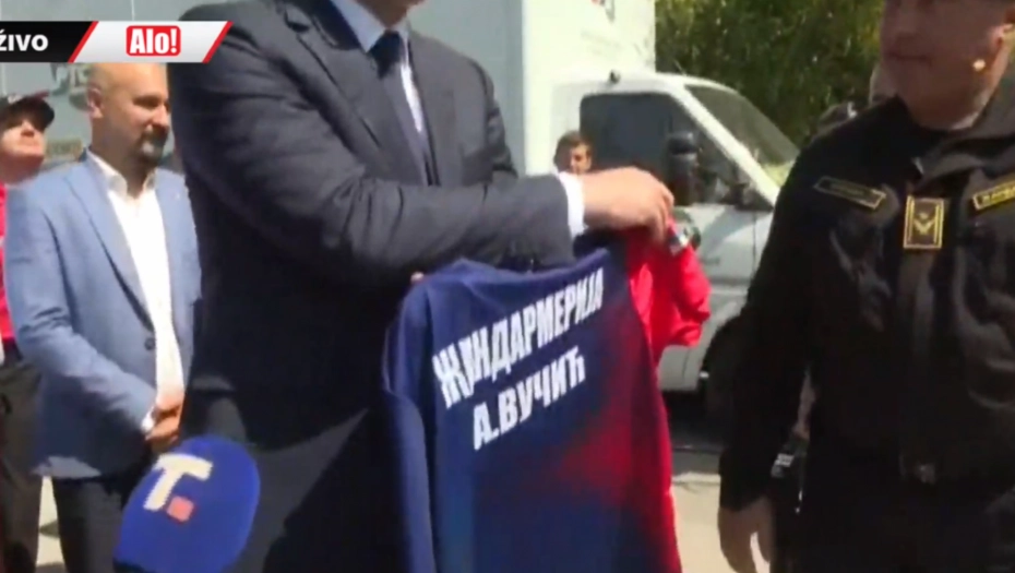 Vučić je od pripadnika Žandarmerije dobio specijalan poklon, dres sa njegovim prezimenom.
