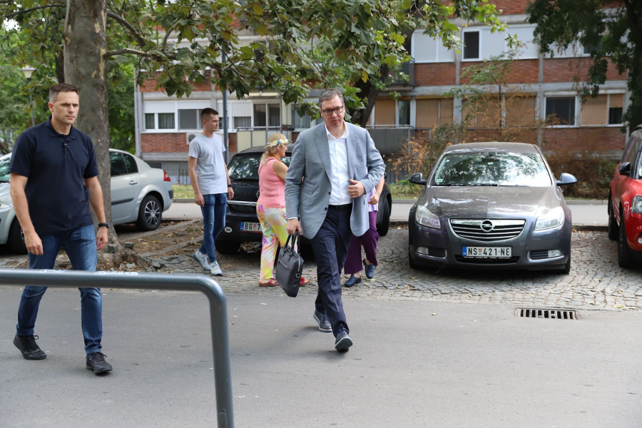 Gradonačelnik Aleksandar Šapić je stigao u teget košulji, brzo je prošao pored brojnih novinara, za njim ministarska Marija Obradović, kao i uvek sa stilom, haljina sa cvetnim dezenom, sandale i bež sako.