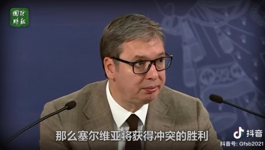 Na društvenoj mreži TikTok u Kini pojavio se video na kojem se vide vozila kosovske policije pod rotacijom, dok u nastavku ide obraćanje predsednika Srbije Aleksandra Vučića, u kojem pruža podršku svom narodu.