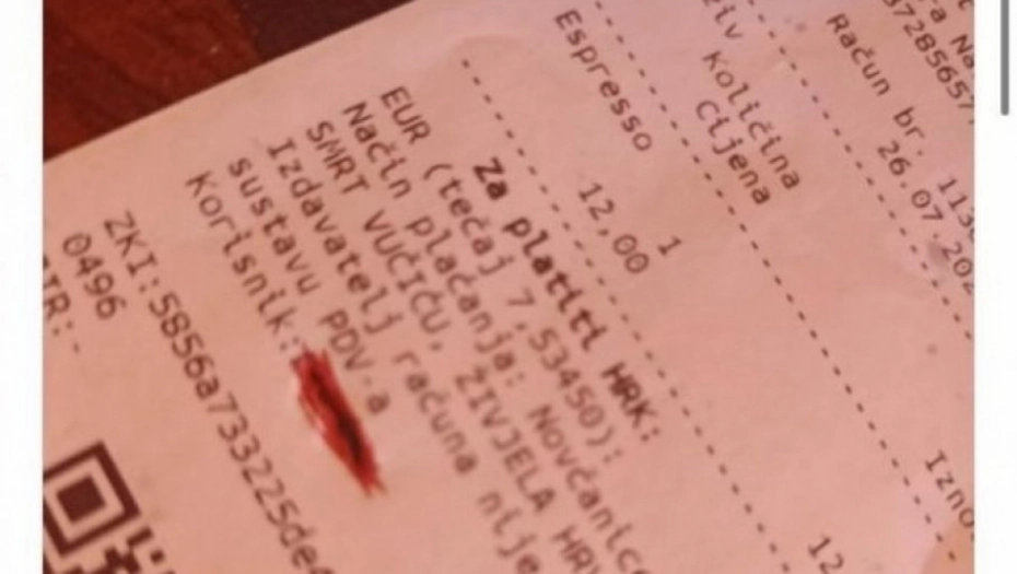 Na društvenim mrežama pojavila se slika fiskalnog računa iz jednog kafića na hrvatskom ostrvu Brač, na odštampanim slovima piše: SMRT VUČIĆU - ŽIVELA HRVATSKA!