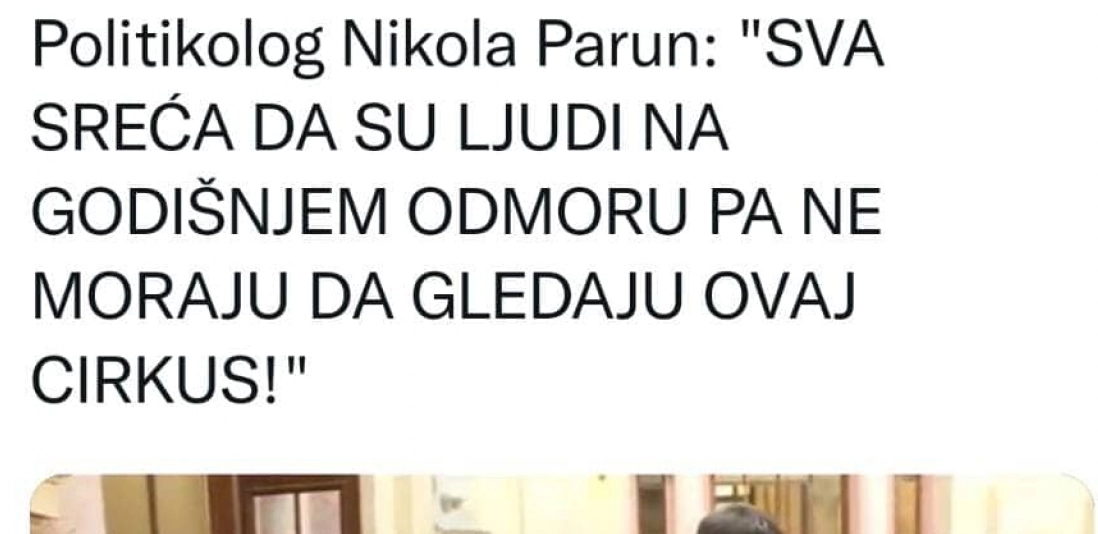 Politikolog Nikola Parun: "SVA SREĆA DA SU LJUDI NA GODIŠNJEM ODMORU PA NE MORAJU DA GLEDAJU OVAJ CIRKUS!"