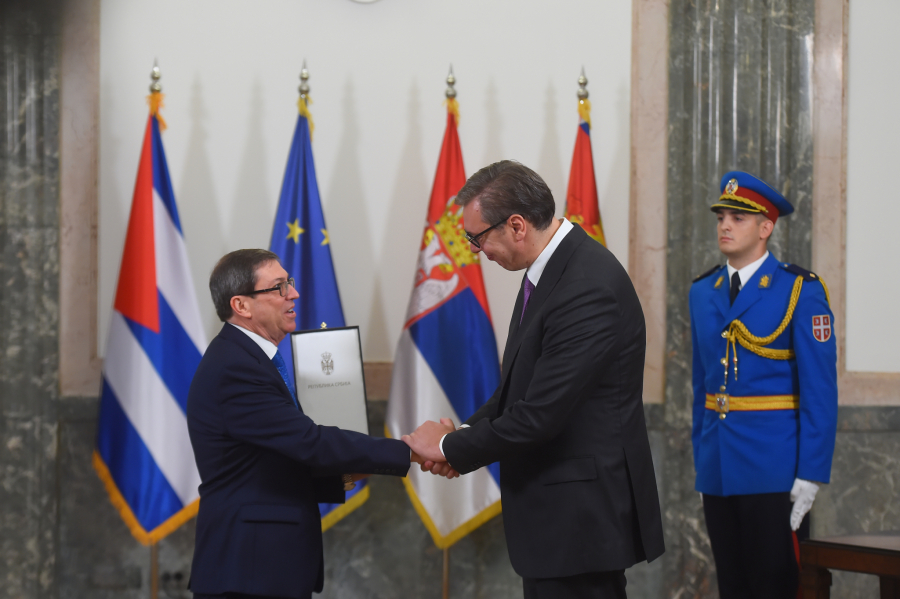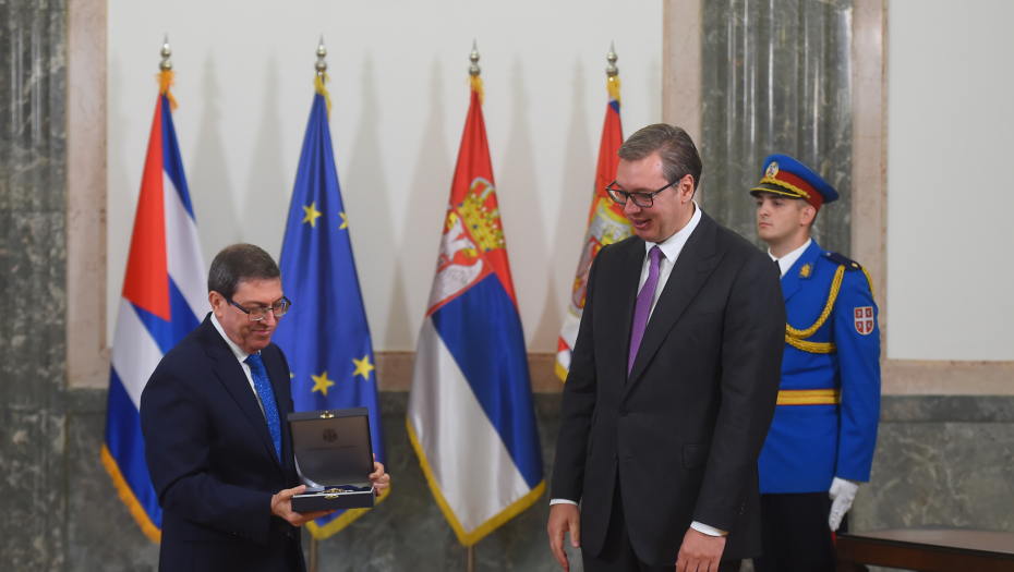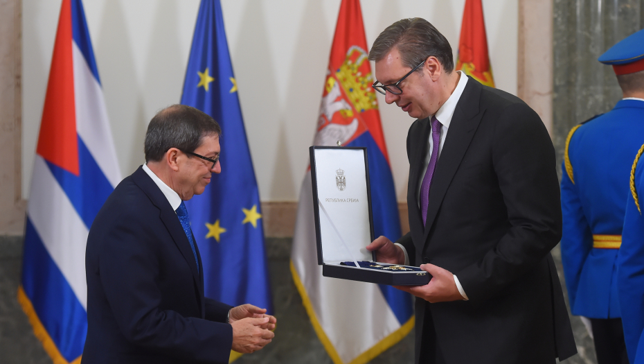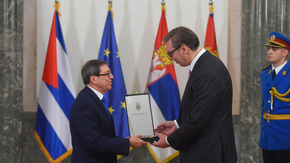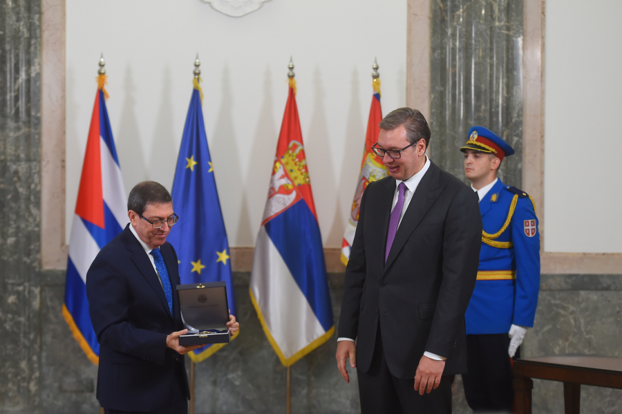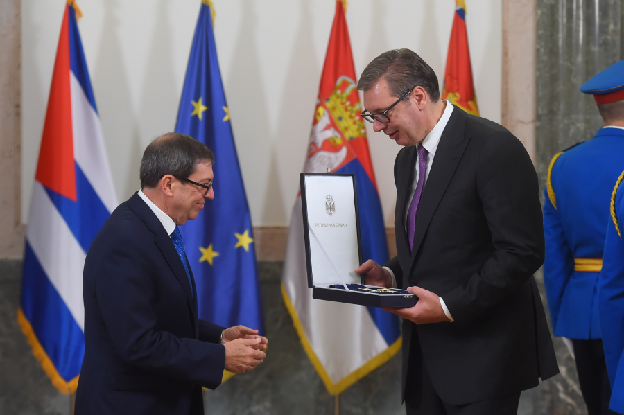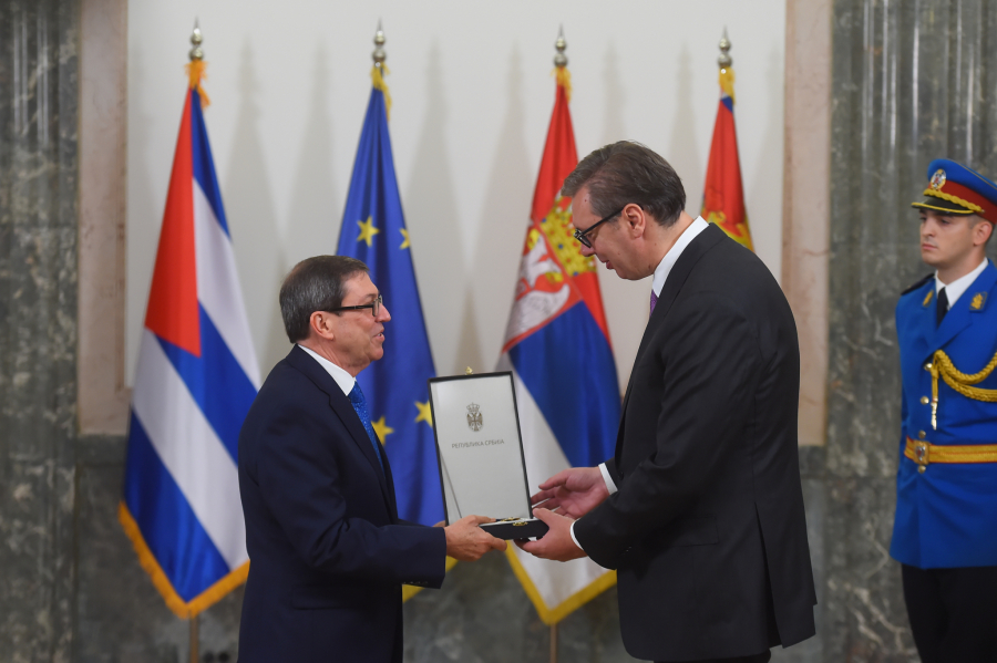 – Neizmerna mi je čast i posebno zadovoljstvo što danas u Beogradu odlikujem ministra spoljnih poslova Kube. Sa velikim ponosom konstatujem da se ovo odlikovanje dodeljuje, što govori o tradicionalnoj povezanosti uprkos geografskoj udaljenosti. Zahvaljujem Vašoj ekselenciji na ličnom doprinosu unapređenju sveukupnih odnosa Srbije i Kube. Uveren sam da će ova poseta doprineti unapređenju dijaloga.