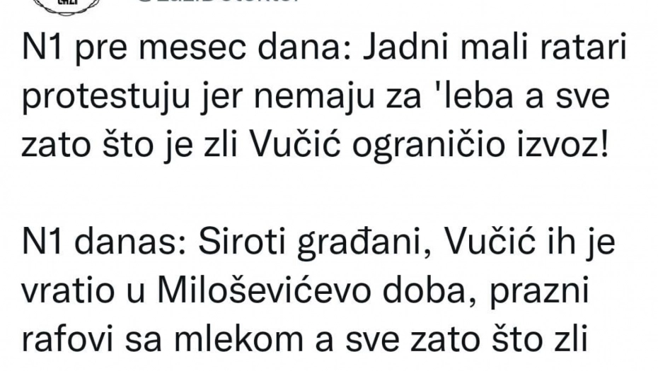 N1 danas: Siroti građani, Vučić ih je vratio u Miloševićevo doba, prazni rafovi sa mlekom a sve zato što zli Vučić nije ograničio izvoz!