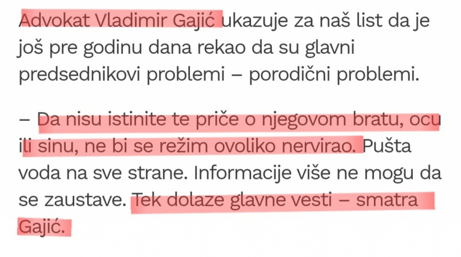 Da Gajić ipak ima stomak i za još gore stvari, svedoči činjenica da je do nedavno kriminalizovao Vučićevog sina, brata i oca, ali tada predsednik Srbije Aleksandar Vučić nije pretio šamaranjem!