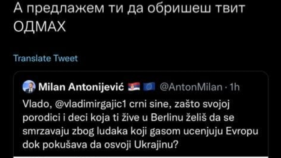 Za one koji ne prate ovaj konflikt, Gajić je putem Tvitera podržao restrikcije gasa čitavoj Evropi.