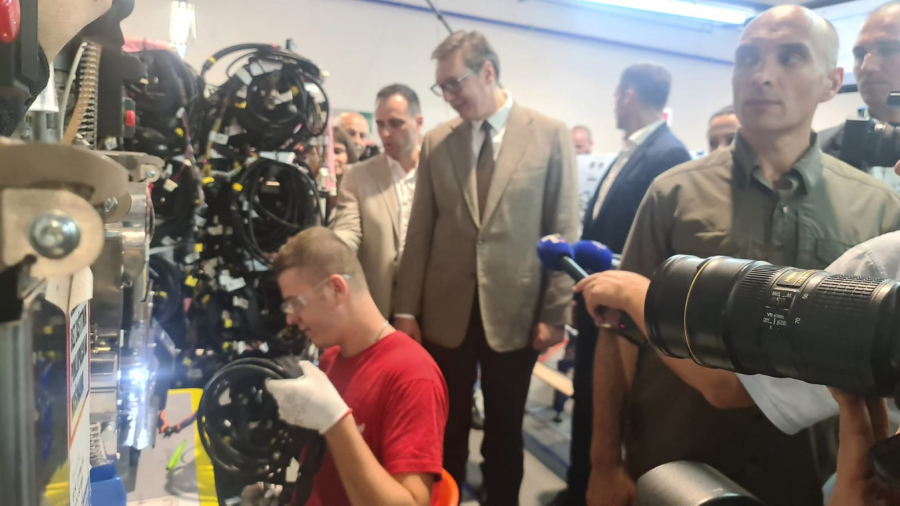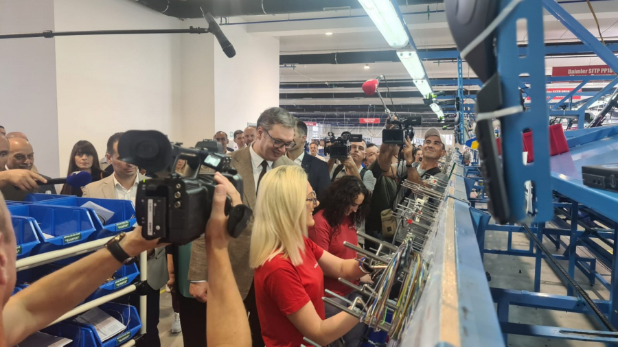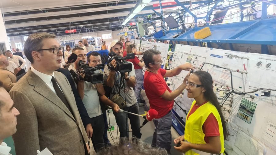 Predsednik Srbije Aleksandar Vučić je imao priliku da zajedno sa radnicima obiđe fabriku, kao i da porazgovara sa brojnim zaposlenima.