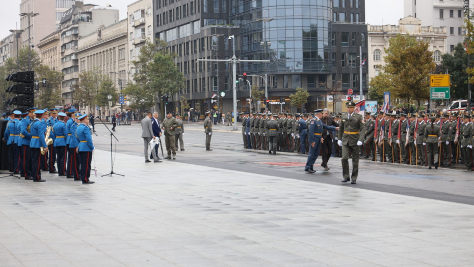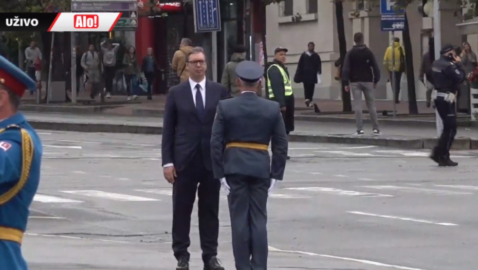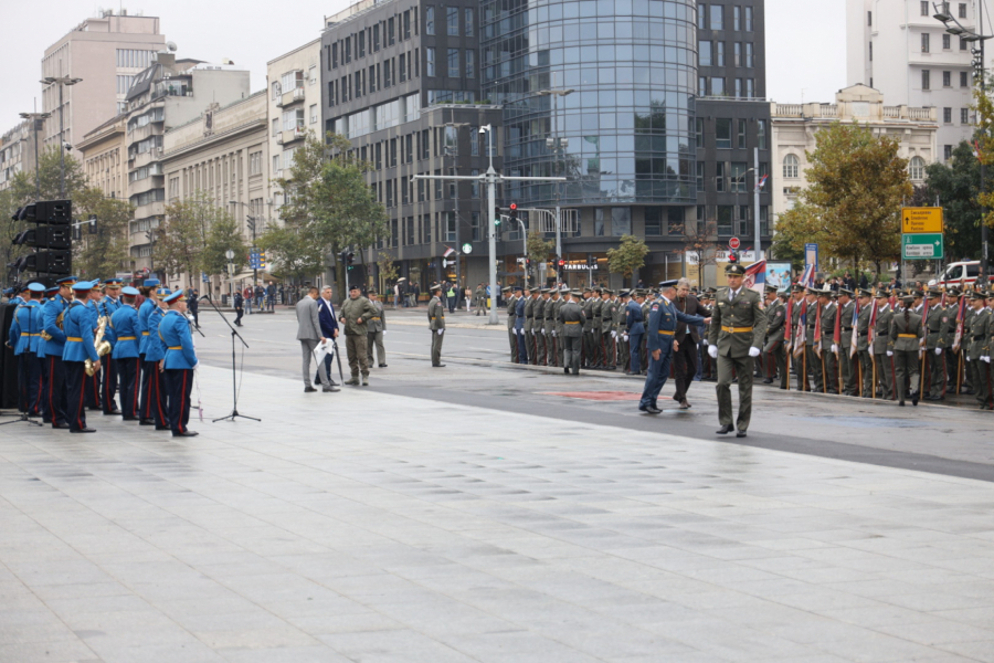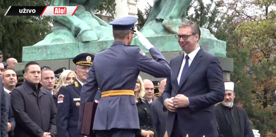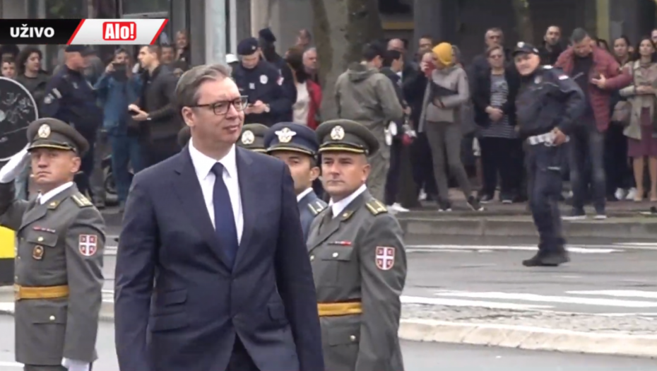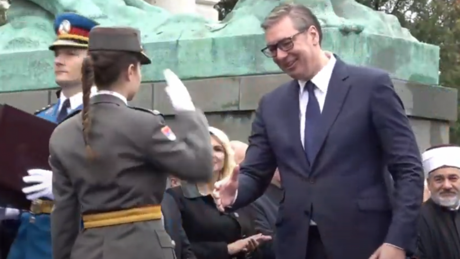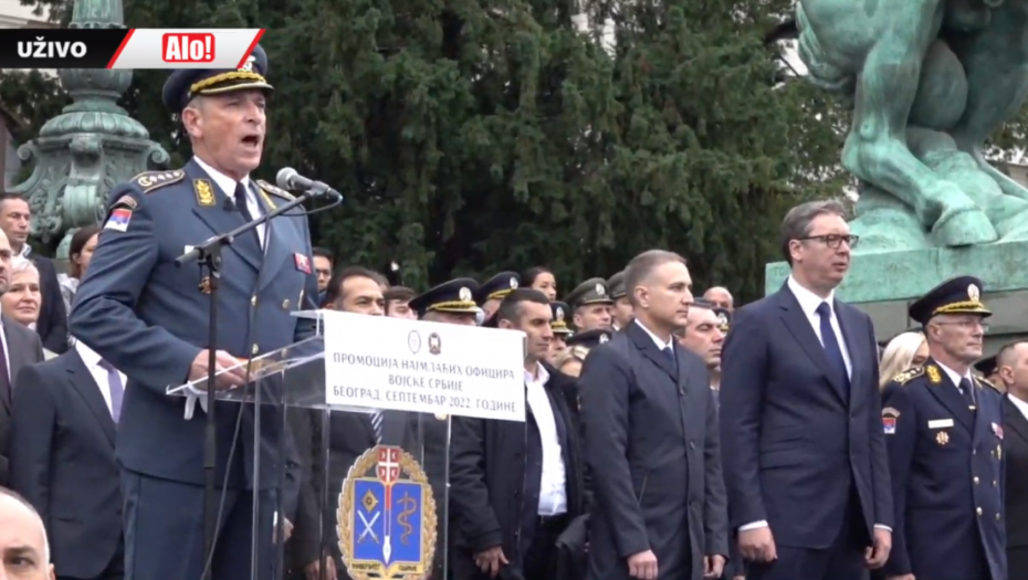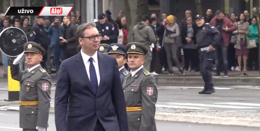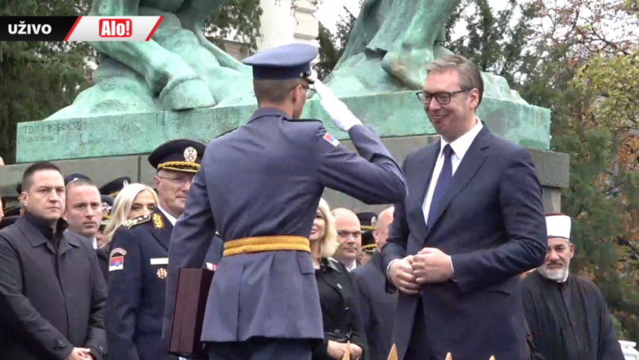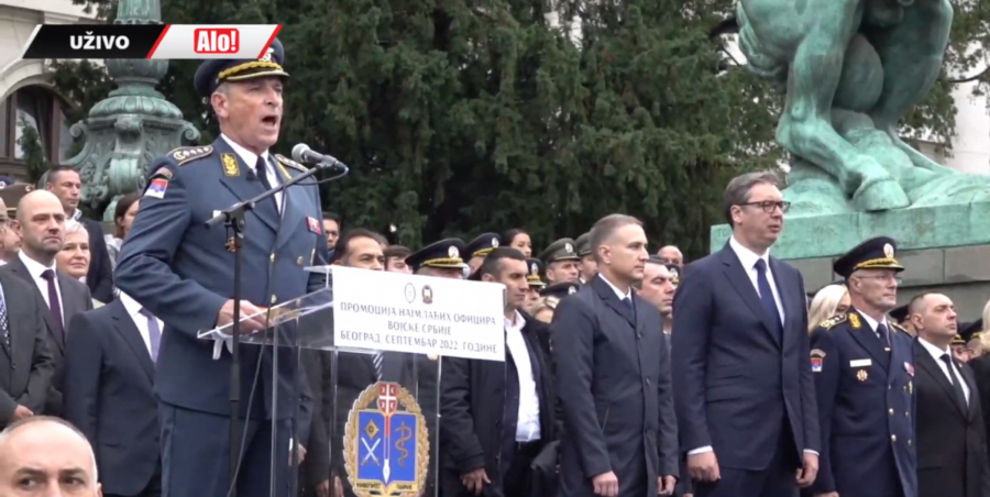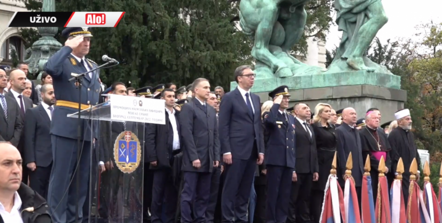 - Oficiri i kadeti zdravo! - pozdravio je predsednik mlade oficire pred Skupštinom Srbije.