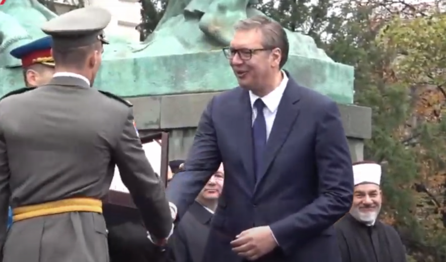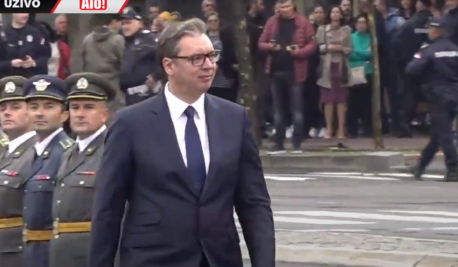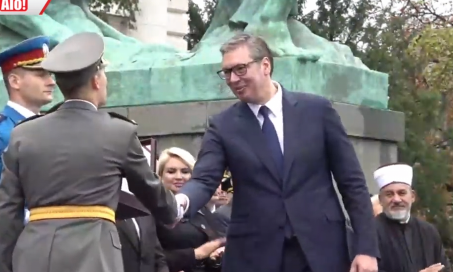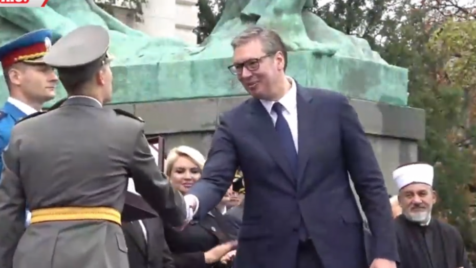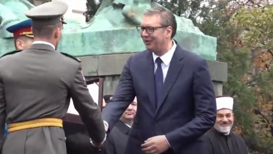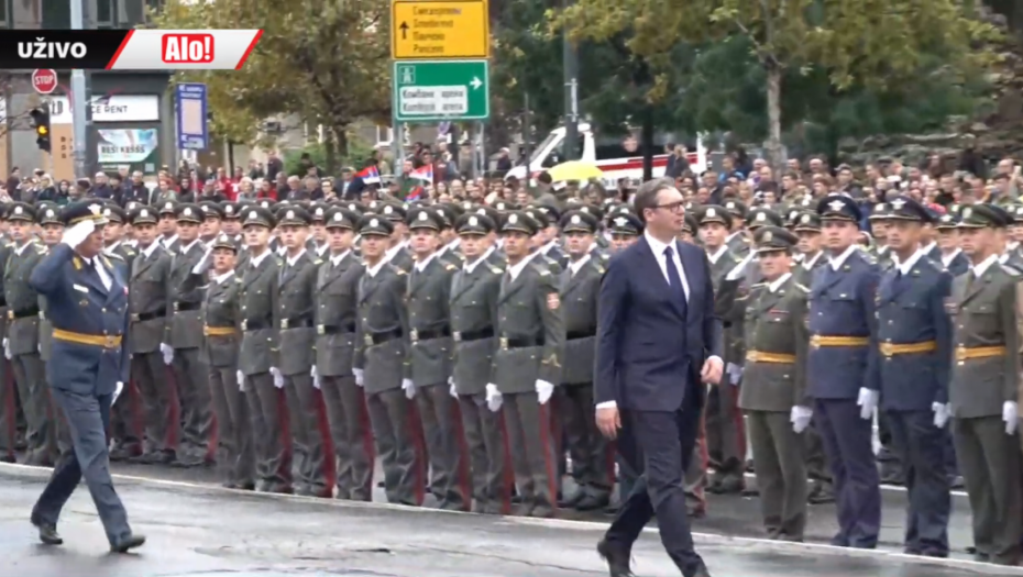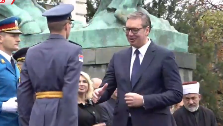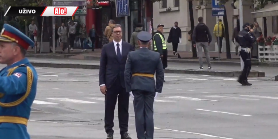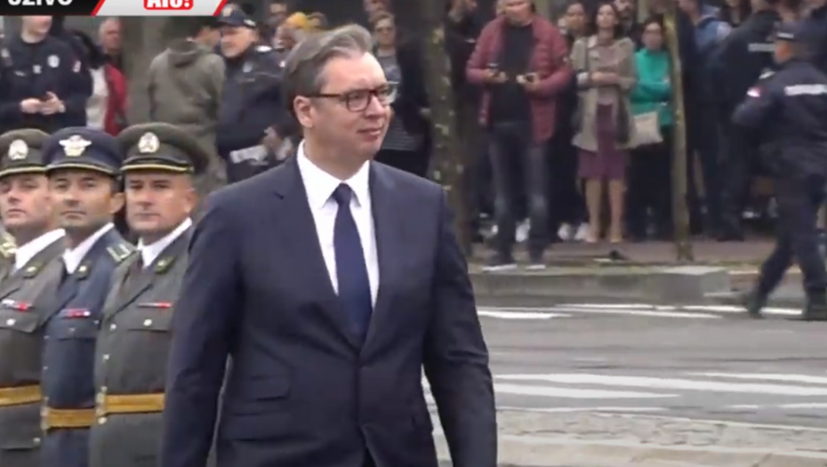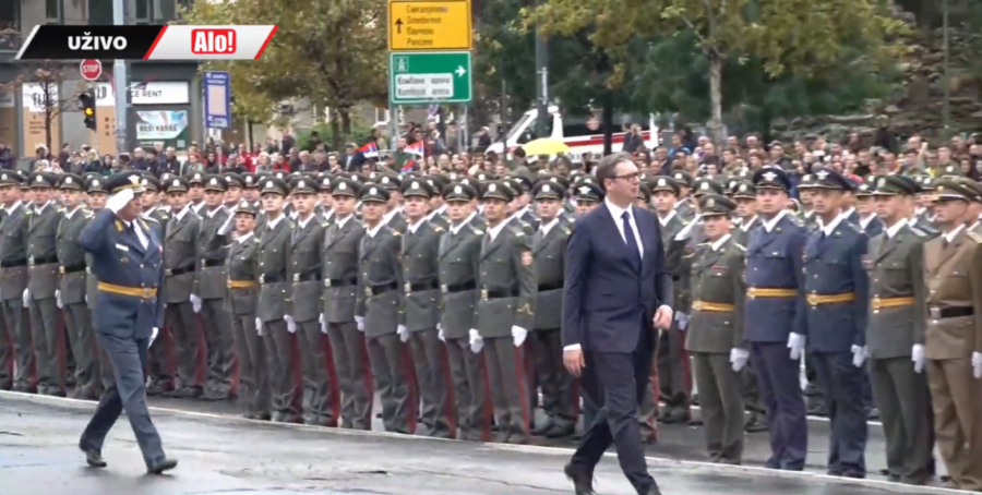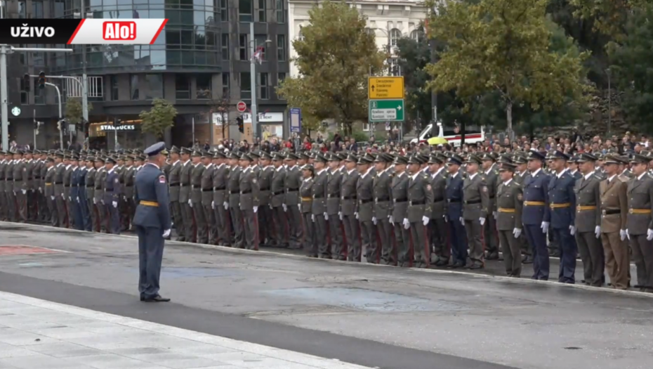 - Oficiri i kadeti zdravo! - pozdravio je predsednik mlade oficire pred Skupštinom Srbije.