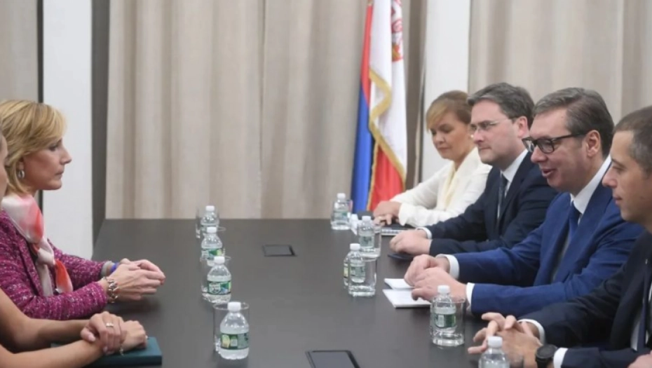 Vučić se susreo sa Teni u novoj zgradi Misije Srbije pri UN u Njujorku, a sastanku prisustvuju i ministar spoljnih poslova Nikola Selaković, ambasador Srbije u SAD Marko Ðurić i stalni predstavnik Srbije pri UN ambasador Nemanja Stevanović.