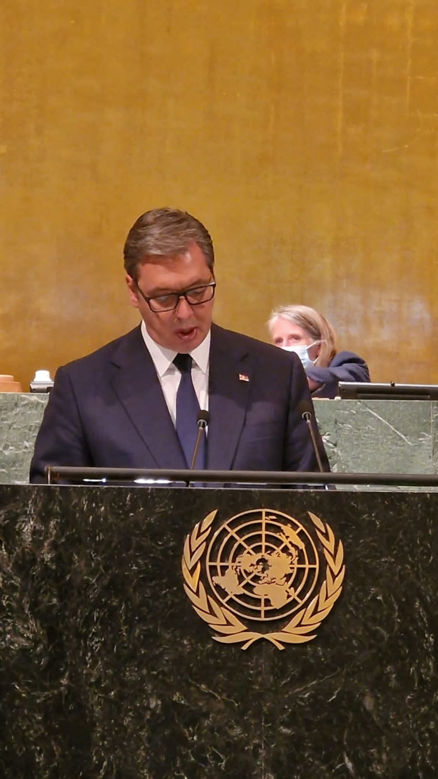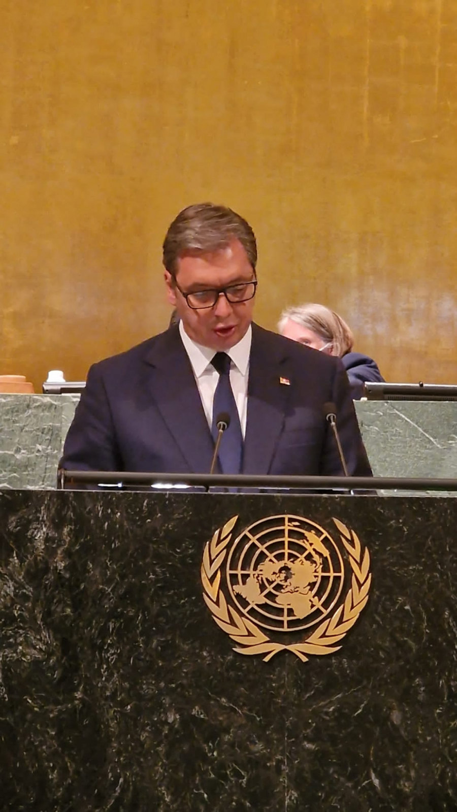 - Na kraju, želim da potvrdim da će Republika Srbija nastaviti da bude pouzdan partner u ostvarivanju zajedničkih ciljeva definisanih u okviru Ujedinjenih nacija čvrsto verujući da je to najbolji put kojim možemo izgraditi bolji svet za nas i naše buduće generacije. Ali ne smemo da zaboravimo da su Ujedinjene nacije snažne onoliko koliko poštujemo zajednički usaglašene odluke i akte ove organizacije. Živela Srbija! - zaključio je predsednik na kraju svog govora.