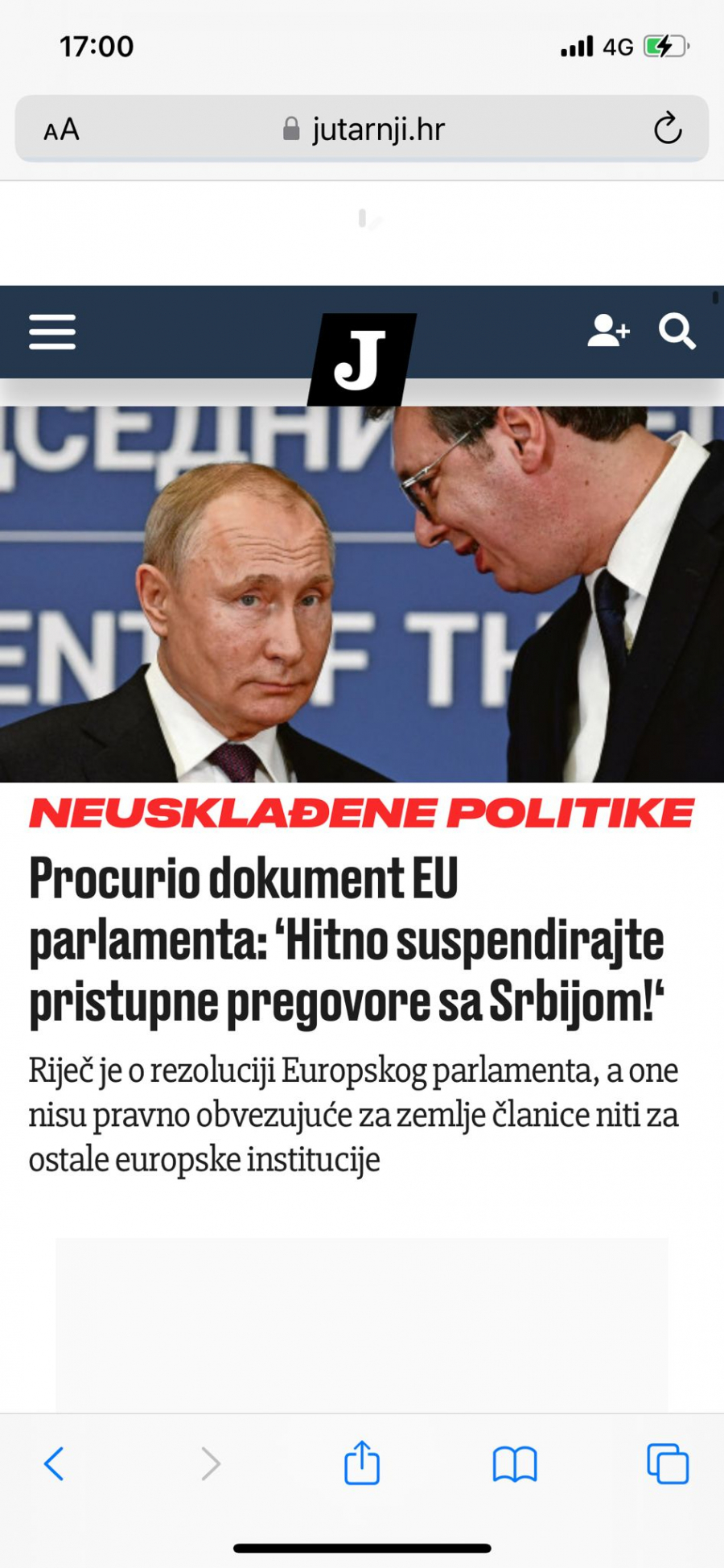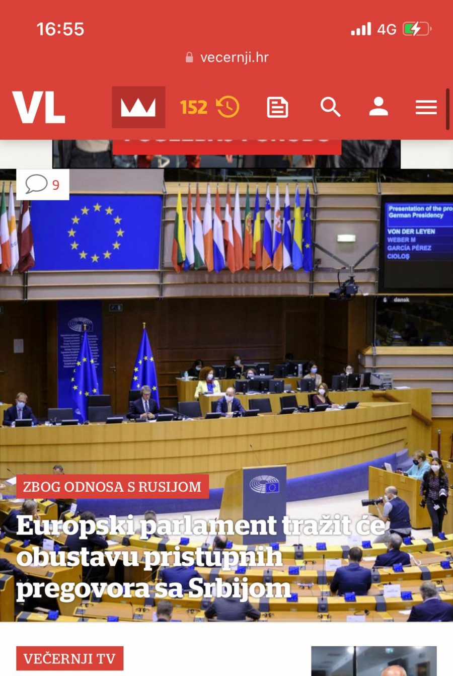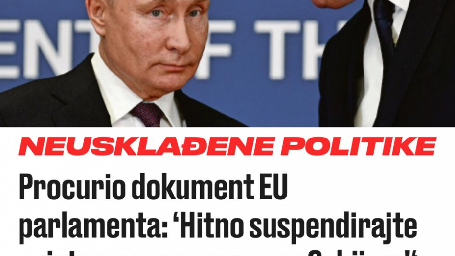 Tako "Jutarnji" piše da je "procurio" dokument EU parlamenta (nije procurio već je nacrt zvanično objavljen) u kome stoji da treba "hitno suspendovati pregovore sa Srbijom".