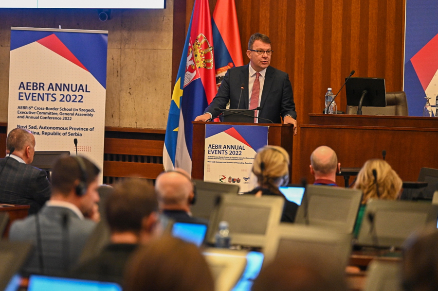 Predsednik Pokrajinske vlade Igor Mirović obratio se danas učesnicima Godišnje konferencije Asocijacije evropskih pograničnih regiona (AEBR), istakavši da je regionalna saradnja od izuzetnog značaja, posebno u neizvesnom vremenu u kom se nalazi ceo svet, i da je ovo prilika da se konkretizuju novi modeli saradnje pograničnih regiona i na ovom i na drugim evropskim prostorima
