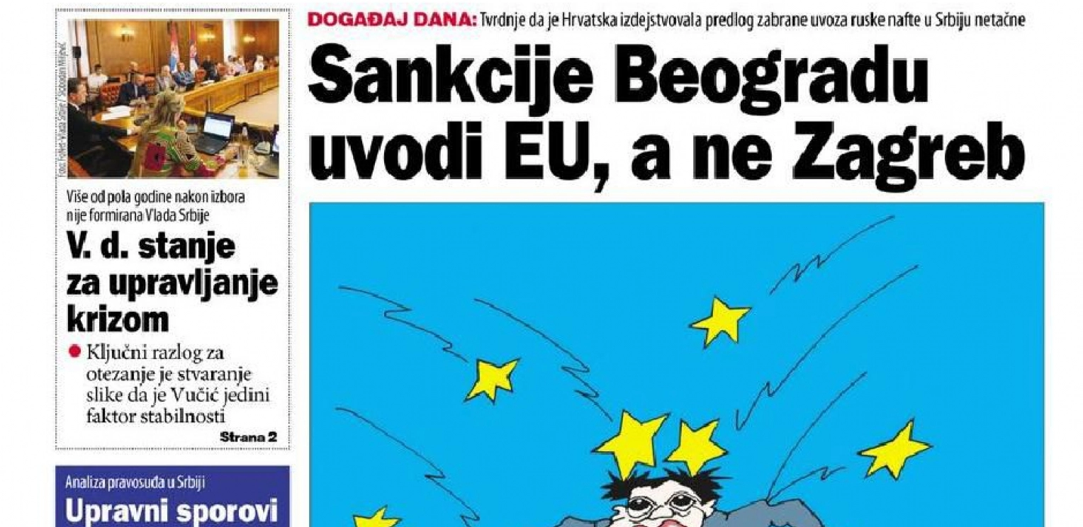 Na naslovnoj strani ovaj tajkunski list objavio je da "Sankcije Beogradu uvodi EU, a ne Zegreb."
