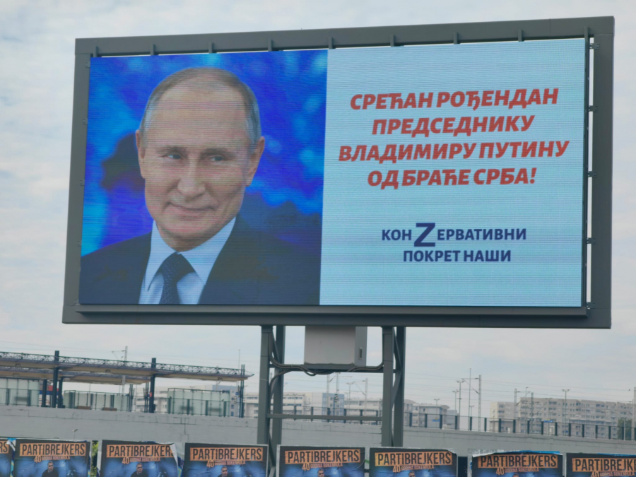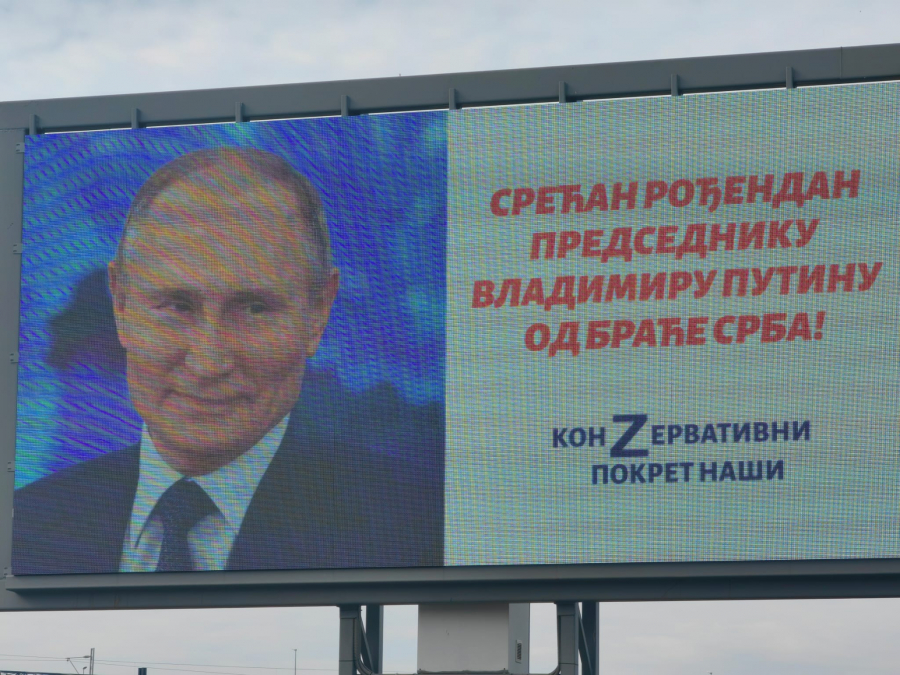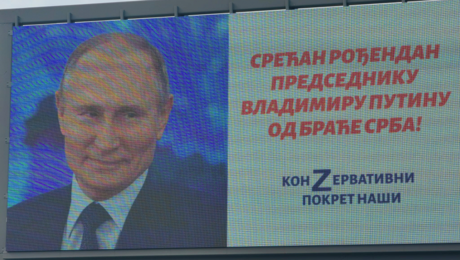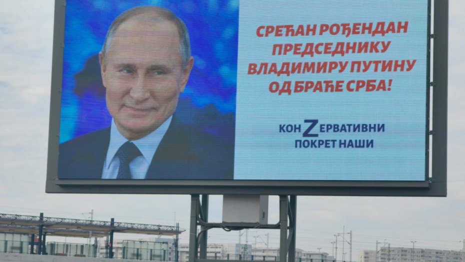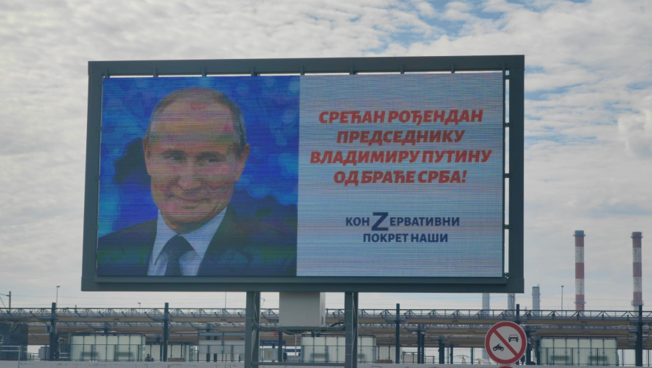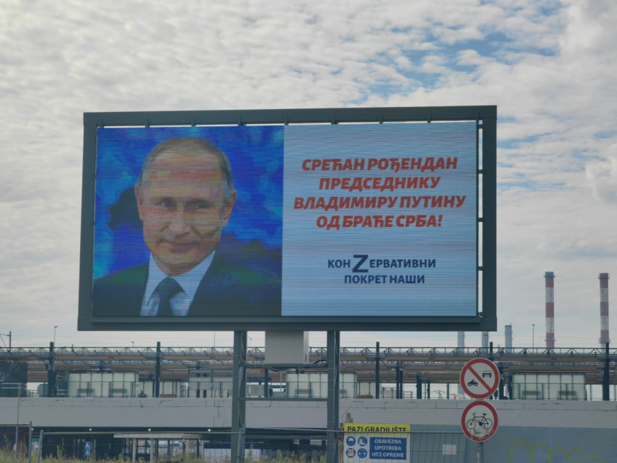 Na bilbordima se nalazi lik predsednika Vladimira Putina uz natpis "Srećan rođendan predsedniku Vladimiru Putinu od braće Srba! " kao i potpis "KonZervativni pokret NAŠI".