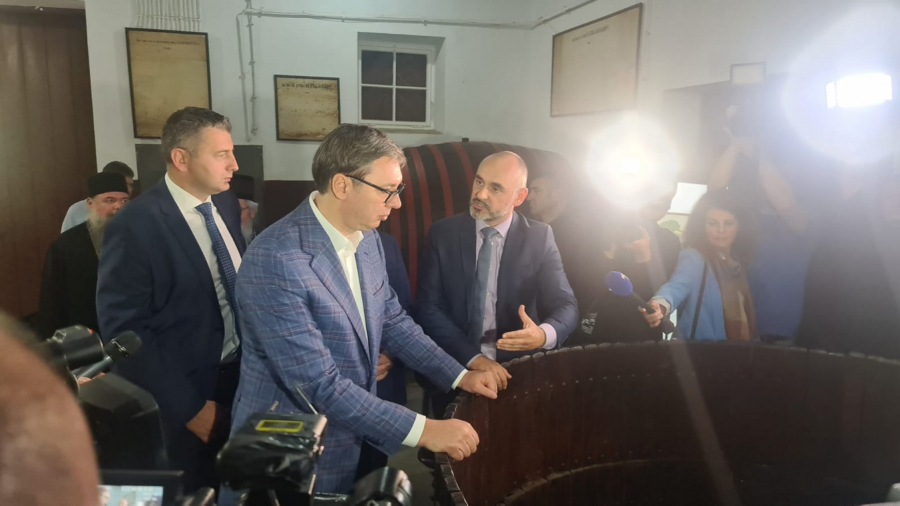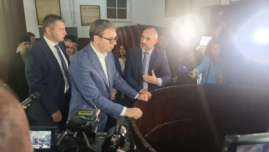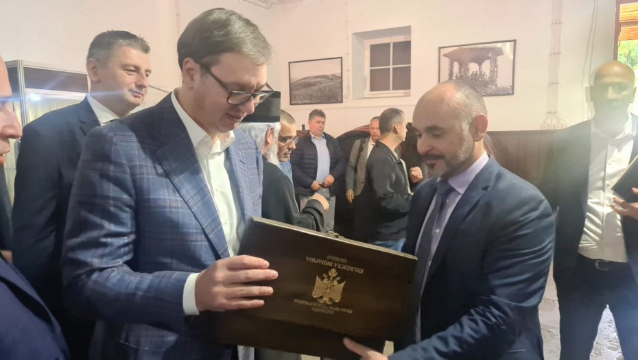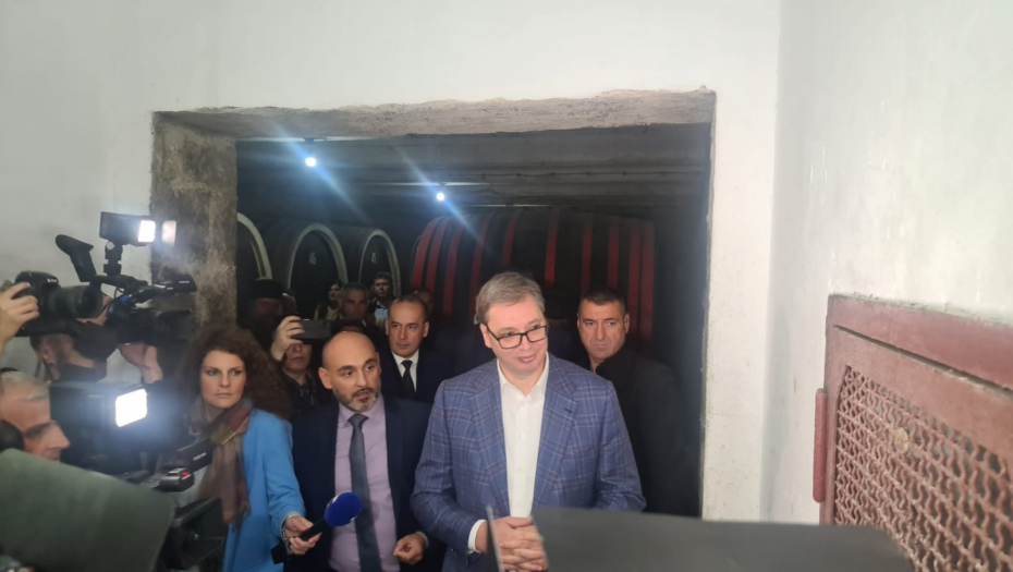 Posle obraćanja, predsednik Vučić je krenuo u obilazak Kraljeve vinarije.