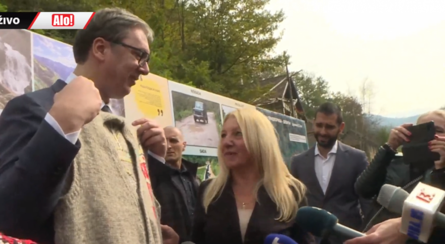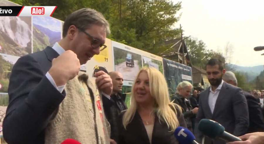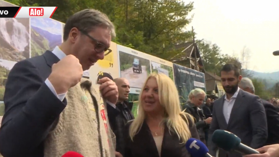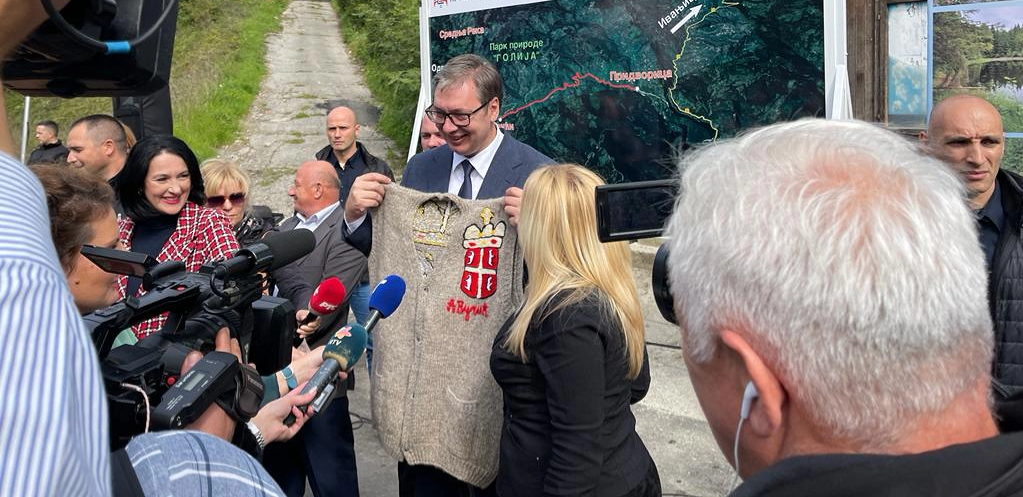 VUČIĆ OD MEŠTANKE IZ DEVIĆA DOBIO POKLON Predsednik se oduševio ručno pletenim džemperom (FOTO)