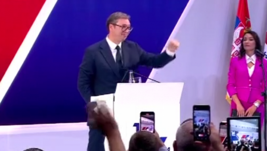 - Beskrajno vas volim i beskrajno vam hvala na ogromnog poverenju, na ljubavi koji ste davali Srbiju. Činjenica da desničarske pristalice i pristalice levice govore da smo na onoj drugoj strani dokazuju da smo samo na strani Srbije - tvrdi predsednik SNS.