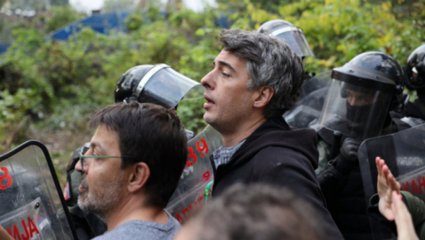 Par desetina samozvanih ekologa zapalilo je baklje i pokušalo da probije policijski kordon. Pripadnici Ministarstva unutrašnjih poslova su reagovali u skaldu sa zakonom i nisu dozvolili demonstrantima da poruše zaštitnu ogradu koja se nalazi oko gradilišta. Tom prilikom je uhapšeno pet osoba.