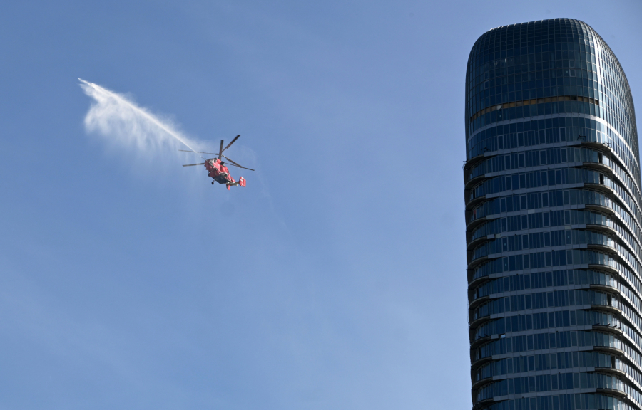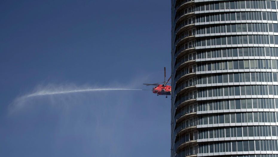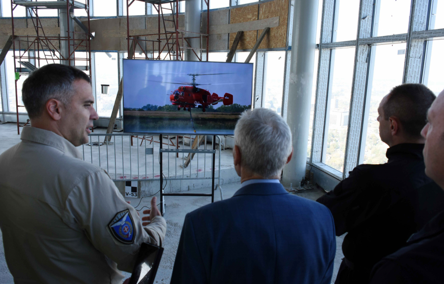 Srpski ministar unutrašnjih poslova i ruski ambasador su iz kule sa Beograda na vodi posmatrali prikaz sposobnosti helikoptera Kamov Ka-32 za gašenje požara i uverili se u kapacitete i visoku efikasnost ovog helikoptera.