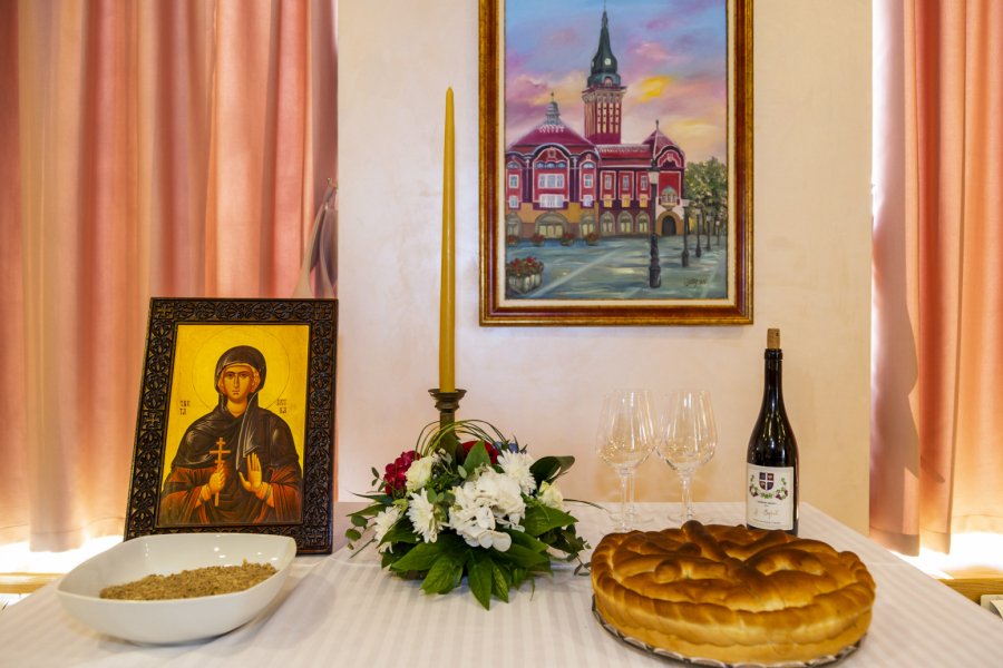 Kako tradicija nalaže, na slavi je osveštan i izlomljen slavski kolač, a ovogodišnji kum slave Dejan Ljubisavljević, kumstvo za sledeću godinu predao je Aleksandru Medakoviću.