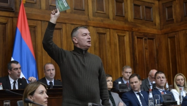 Inače, predsednik parlamenta Vladimir Orlić izrekao je opomenu Aleksandru Jovanoviću Ćuti, jer je bez dozvole prilazio stolu predsedavajućeg i ministrima delio letke.