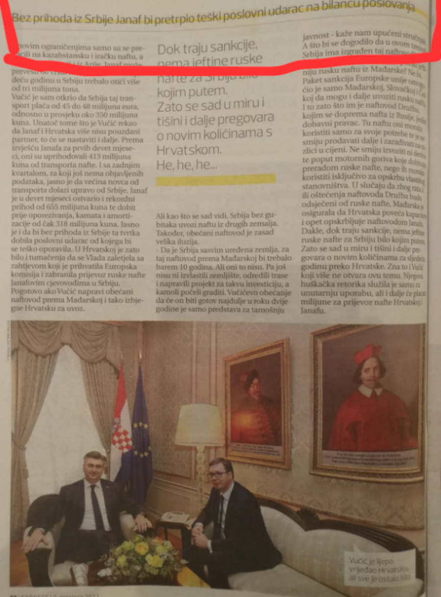 U hrvatskim medijima objavljen je tekst kojim se tvrdi da Srbija nastavlja da uvozi naftu preko Hrvatske, i tvrdi se da je predsednik Srbije lagao.