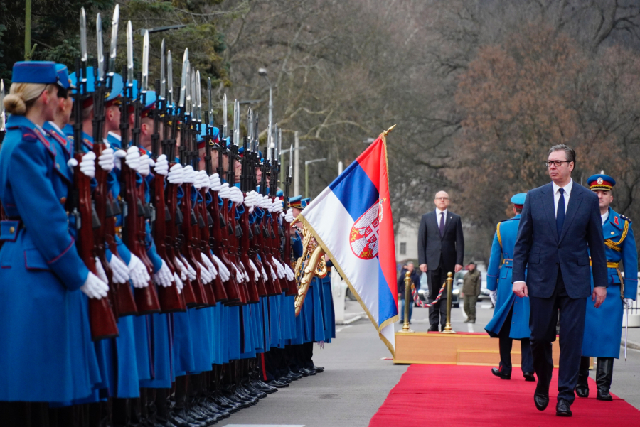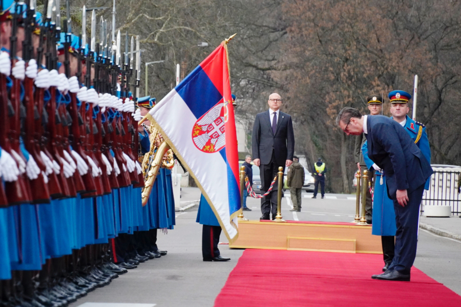 Vučić je svečano dočekan od strane Garde, gde mu je počasno salutirano.
