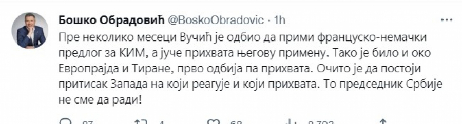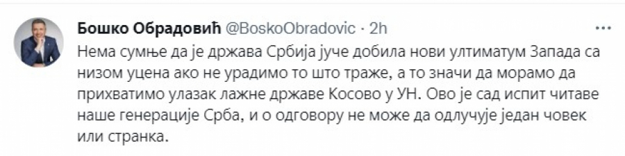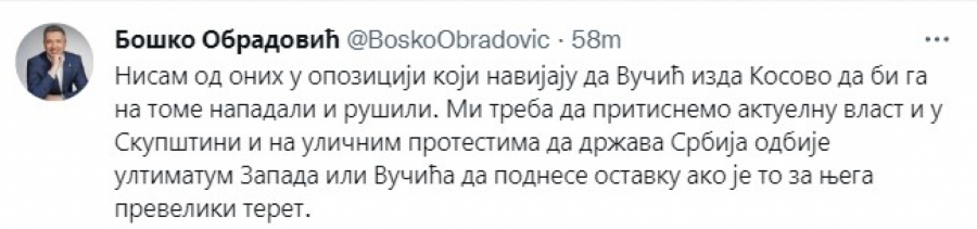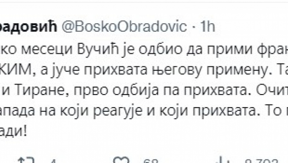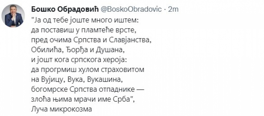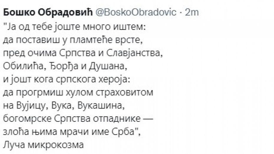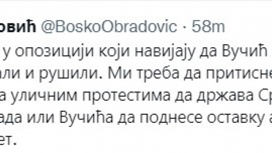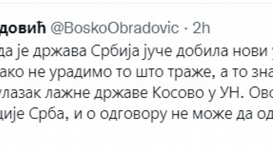 Evo tvitova Boška Obradovića u poslednja dva sata: