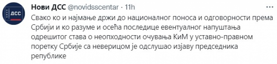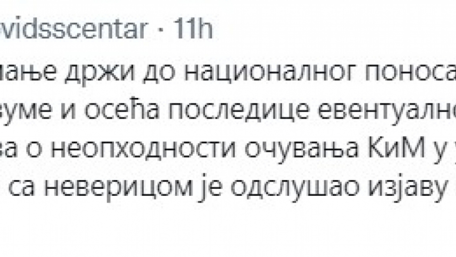 Da se junače iz toplih domova na Dedinju u kojima se živi o državnom trošku, da tuđu decu šalju u ratove dok njihova žive u Parizu, a da zaboravljaju na činjenicu, pošto su se obojica hvalili da su junaci Petog oktobra, da je upravo taj Peti oktobar oslobodio, na primer, Aljbina Kurtija iz našeg zatvora.