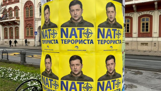 "ZELENSKI NATO TERORISTA" Centar Beograda izlepljen plakatima