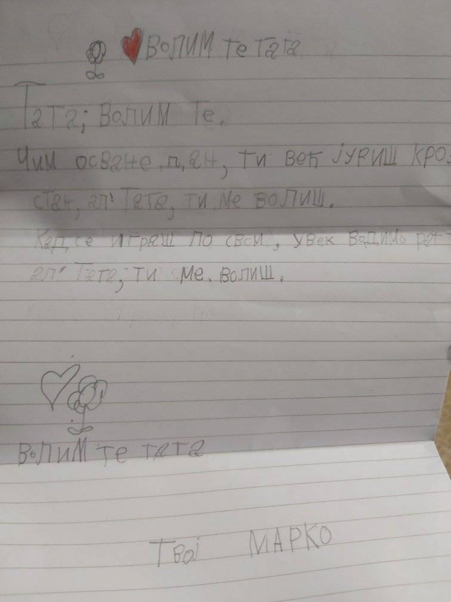 "TATA, VOLIM TE" Pogledajte pismo koje je sin poslao Miljanu kog su pokušali da ubiju ROSU teroristi (FOTO)