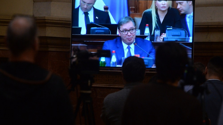 Predsednik Srbije Aleksandar Vučić prisustvuje sednici posvećenu situaciji na Kosovu i Metohiji. Opozicioni huligani su više puta vikali, nepristojno se ponašali, a zatim krenuli i fizički da se obračunaju sa predsednikom Srbije.