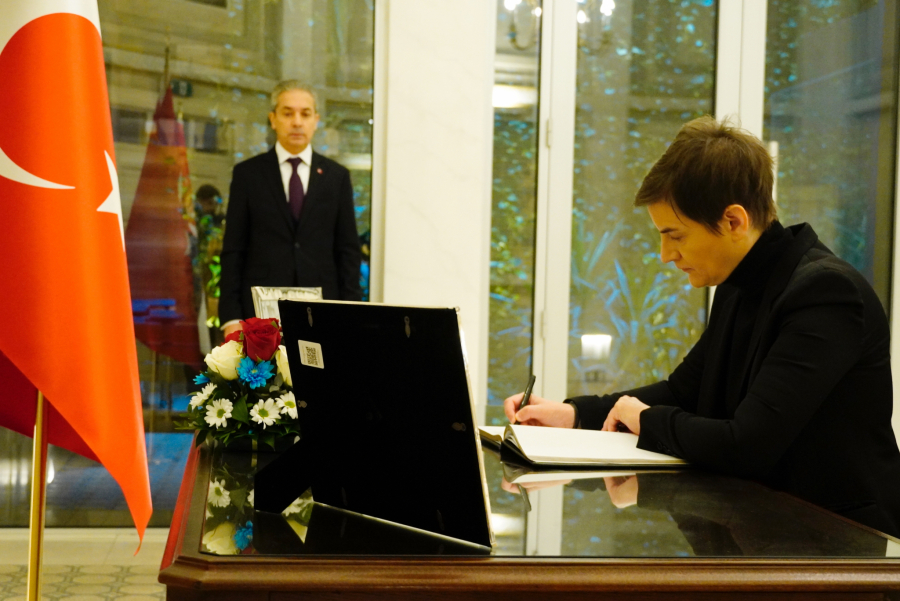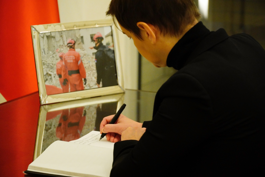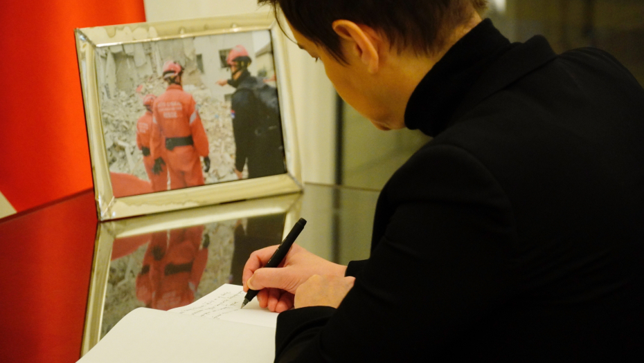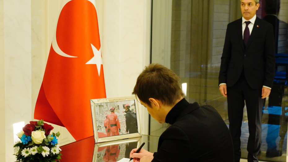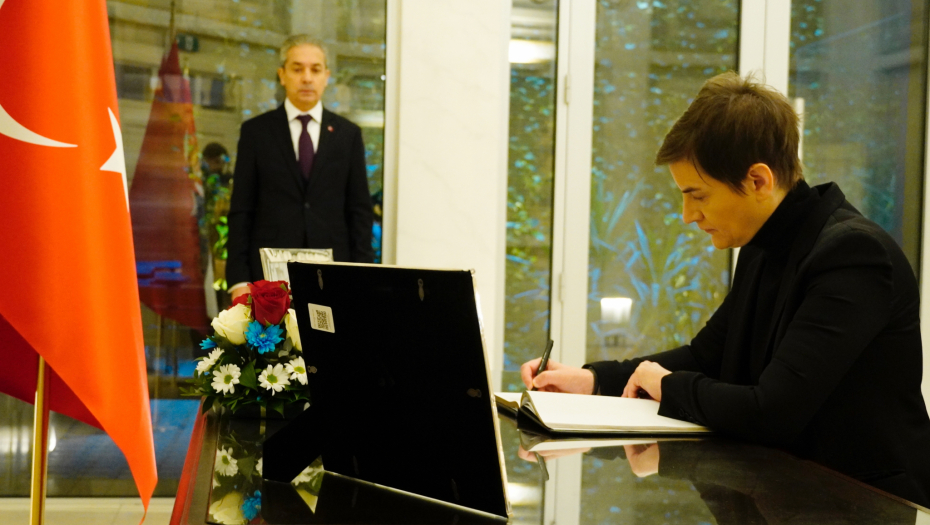 REPUBLIKA SRBIJA I NJEN NAROD DELE BOL I TUGU Brnabić se upisala u knjigu žalosti (FOTO)