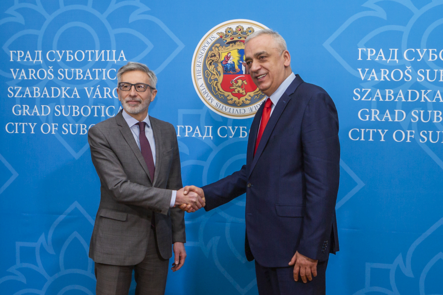 Ambasador Košar zahvalio se gradonačelniku Stevanu Bakiću na dočeku u Subotici i napomenuo da je u ovaj grad došao kao predstavnik Francuske koju sa Srbijom spaja dugo prijateljstvo.