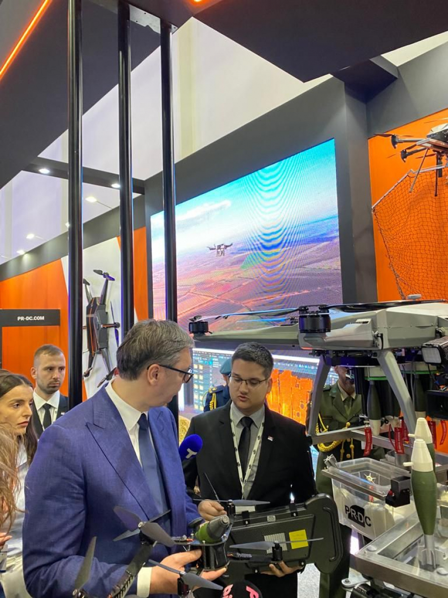 Inženjer PR-DC-ja Miloš Petrašinović ističe da je konkurencija na ovogodišnjem IDEX-u nikada veća i da se u Abu Dabiju može cuti da je ovo najbitnije izdanje sajma u istoriji. “Trenutne geopolitičke i epidemiološke okolnosti učinile su da je danas u Emiratima zaista vrh svetske vojne industrije, rekao bih bez izuzetka. Mi ćemo ove nedelje predstaviti naš prodajni dron IKA bombarder - još jedan dron iz serije IKA, koji su do sada bili najpopularniji na svim sajmovima na kojima smo učestvovali. Sve bespilotne letelice koje proizvodimo imaju višestruku namenu, ovde predstavljamo njihovu upotrebu u vojnoj industriji.” kaže Petrašinović.