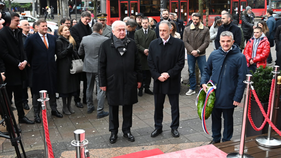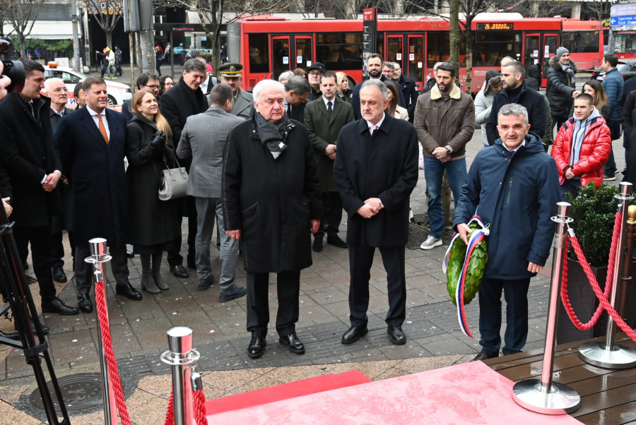 Pre zvanične ceremonije položen je venac na spomen-ploču ispred Hotela „Moskva” posvećenu osnivačima Olimpijskog komiteta Srbije.