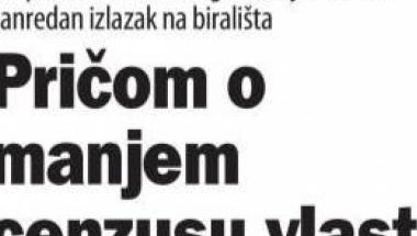 Tako je na naslovnoj strani osvanula najava teksta uz naslov "Pričom o manjem cenzusu vlast najavljuje izbore", a u najavljenom tekstu naslov "Većim cenzusom Jovanov najavio izbore?"